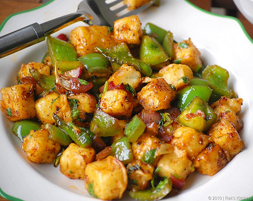 Cubes of Chicken Breast marinated in yoghurt, herbs and spices and cooked in a clay oven.