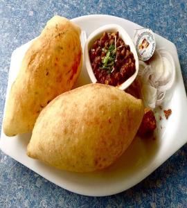 puffed wheat bread served with garbanzo beans curry